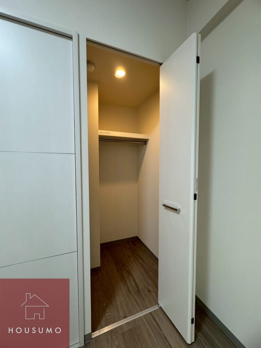洋室には奥行きのある収納スペースが設けられており、衣類だけでなく季節用品や大きめの荷物も効率的に収納可能です。ハンガーラックや可動棚を活用すれば、上着やシャツ、折りたたみ布団、趣味のアイテムまで整理整頓しやすく、見た目もすっきり保てます。奥行きがあることで、洋室の居住スペースを広く使えるのも魅力です。日常の使い勝手だけでなく、来客時や模様替えの際にも柔軟に対応できる、使い勝手の良い収納設計です。