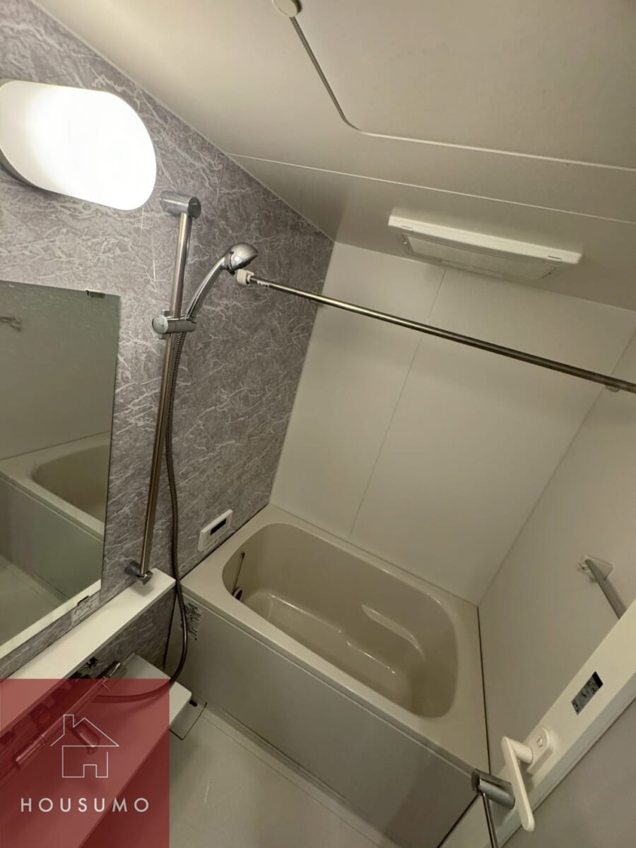 バスルームはコンパクトなサイズ感ながら、便利な追い炊き機能を搭載しています。お湯が冷めてもワンタッチで快適な温度に調整できるため、忙しい日常や家族で入浴時間がずれる際にも重宝します。省スペースでお掃除もしやすく、日々のメンテナンスが楽に行える点も魅力です。無駄のない設計でありながら、しっかりと機能性を備えた使い勝手の良いバスルームとなっています。