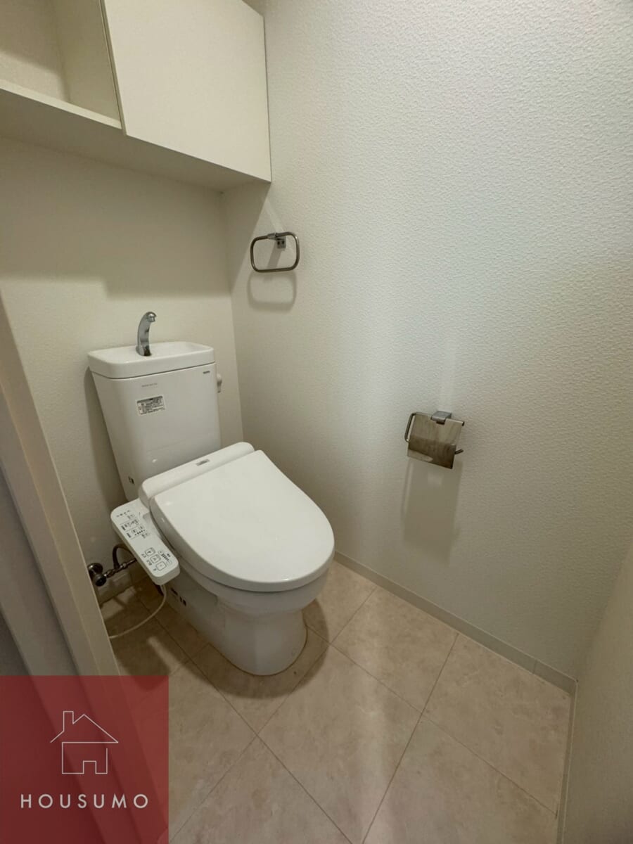 独立タイプのトイレは、温水洗浄便座付きで機能性も高く、清潔感のある快適な空間に仕上がっています。シンプルでありながらも生活に欠かせない設備がしっかり整っており、来客時にも安心です。