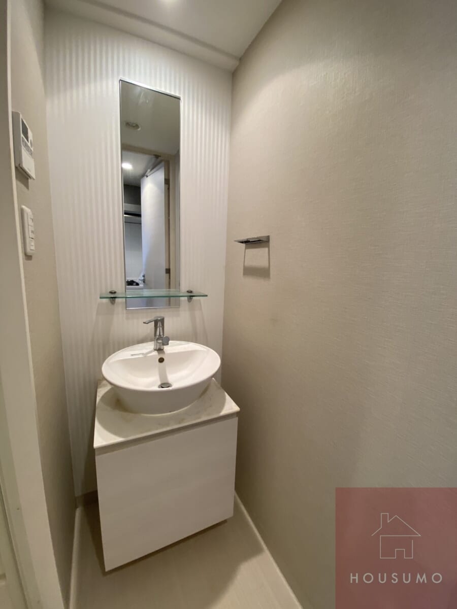 脱衣室には独立洗面台を完備されているので、朝の身支度や帰宅後の手洗い、夜のスキンケアタイムまで、使い勝手がよくストレスのない設計です。鏡裏収納付きですっきりとした清潔感ある見た目に◎脱衣室がしっかりと区切られているので、来客時のプライバシーもしっかりと確保できます。