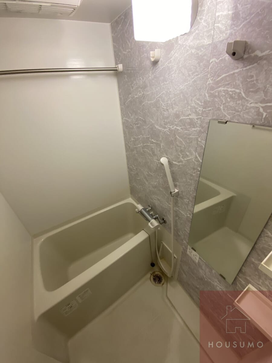 バスルームは浴室乾燥機能つきなので、天気に左右されずに洗濯物が乾かすことができ、