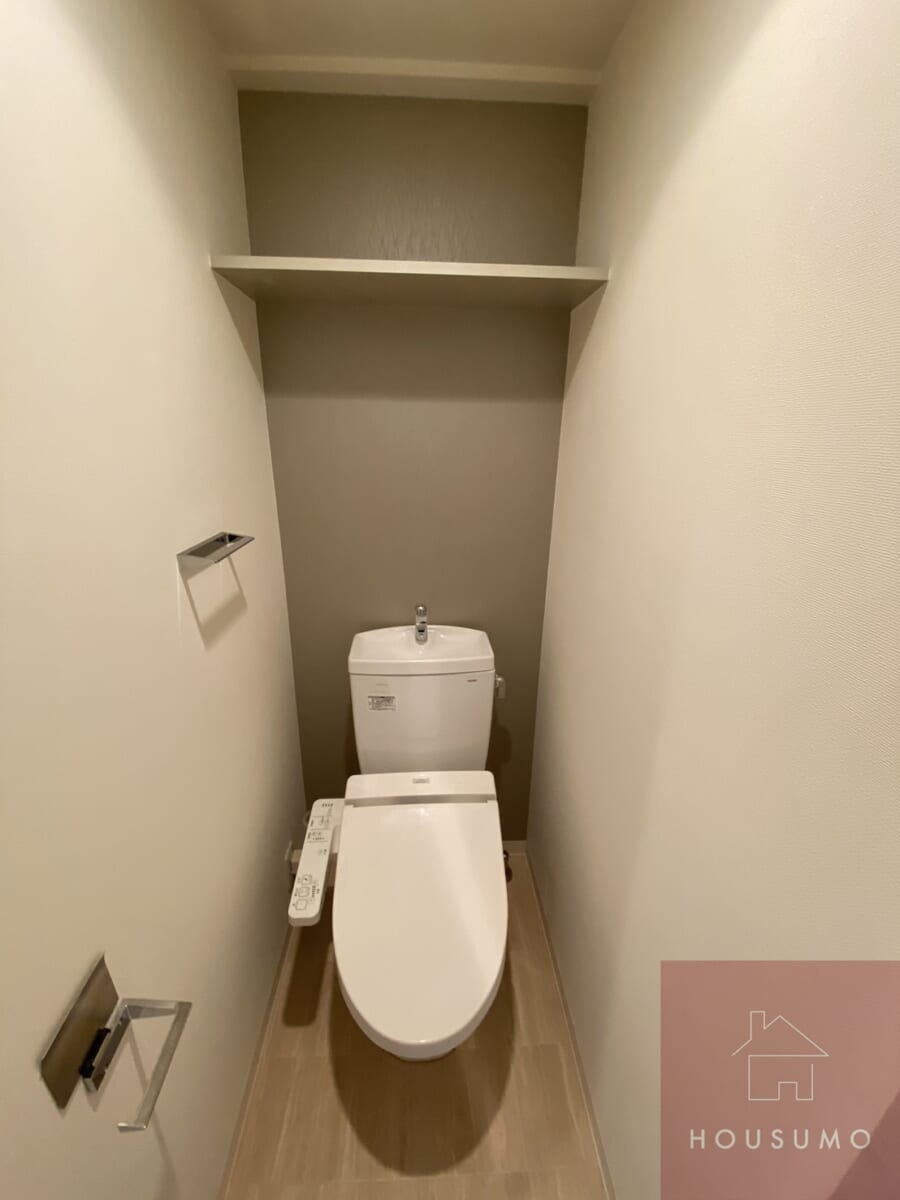 独立タイプのトイレは、温水洗浄便座付きで機能性も高く、清潔感のある快適な空間に仕上がっています。シンプルでありながらも生活に欠かせない設備がしっかり整っており、来客時にも安心です。落ち着いた雰囲気で日常のちょっとした時間も快適に過ごせます。