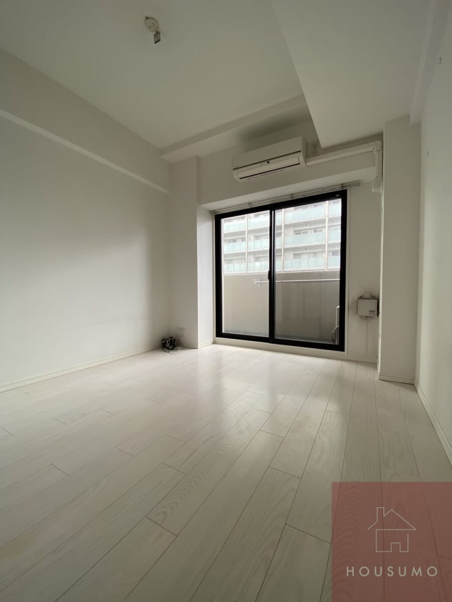 6.4畳の洋室はシンプルな正方形で、家具の配置がしやすく、一人暮らしの転勤者の方でもスムーズに生活動線を確保できます。フローリングや壁は白基調で、どんなインテリアも馴染みやすく、デスクやベッド、収納家具をバランスよく置けるのも魅力です。また、角部屋ではないものの、静かで落ち着いた空間が確保されており、集中して在宅ワークや趣味の時間を楽しむことができます。