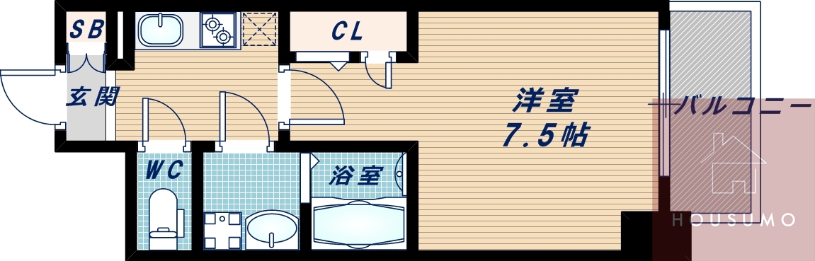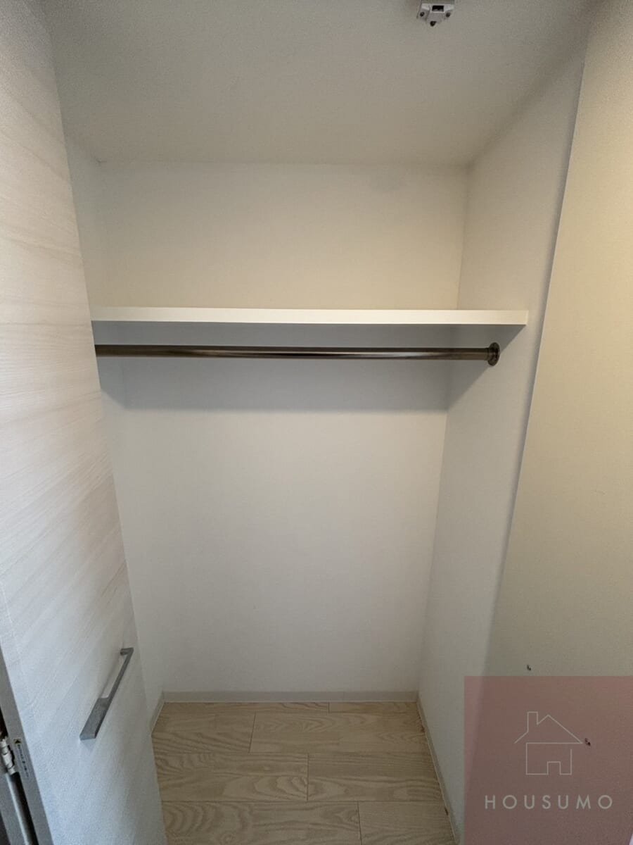 クローゼットはコンパクトですが、ハンガーラッグ付きで、シャツ類はしわなくかけることができます。入りきらないオフシーズンの衣類はボックス収納やベッド下収納などで補うのがおすすめ。限られたスペースを有効活用することで、スッキリとした暮らしが実現します。