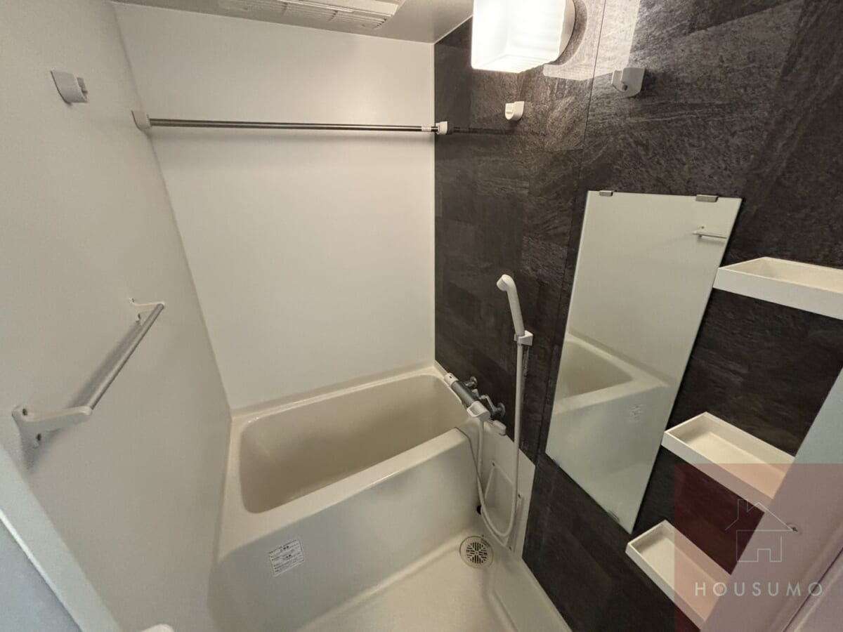 バスルームには乾燥機能を搭載しており、雨の日や夜間でも洗濯物をしっかり乾かすことが可能。湿気やカビ対策にもなるため、清潔感を維持しやすいのも魅力です。コンパクトながら清潔感のある設計で、毎日のバスタイムが心地よいリラックスタイムに。追い焚き機能などはありませんが、シンプルで使いやすく、掃除もしやすい作りになっています。