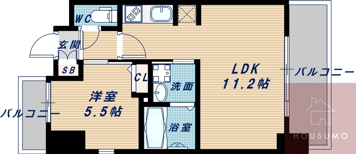 横長の11.2畳のLDKは、家具の配置がしやすく、ゆったりとした空間で一人暮らしを楽しめます。大きな窓から西日が差し込み、明るく温かい雰囲気で、食事スペースとリラックススペースをしっかり分けられるため、オンとオフの切り替えもしやすい設計です。さらにインターネット無料なので、テレワークや趣味のオンライン活動にもぴったりです。独立した5.5畳の洋室は、寝室やワークスペースとして自由に使えるプライベートルームで、角部屋ならではの二面採光で風通しも良く、一日を通して快適に過ごせます◎