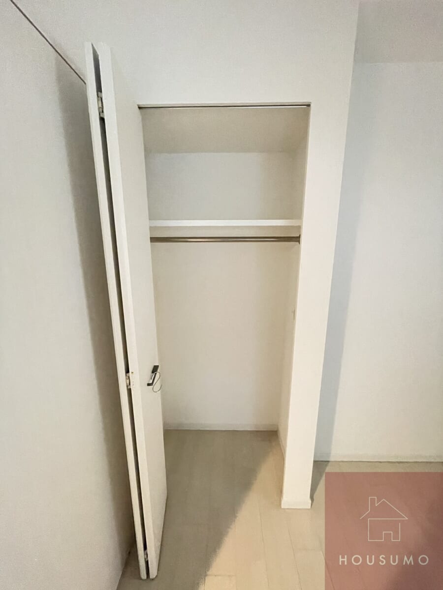 クローゼットはコンパクトですが、ハンガーラッグ付きで、シャツ類はしわなくかけることができます。入りきらないオフシーズンの衣類はボックス収納やベッド下収納などで補うのがおすすめ。限られたスペースを有効活用することで、スッキリとした暮らしが実現します。