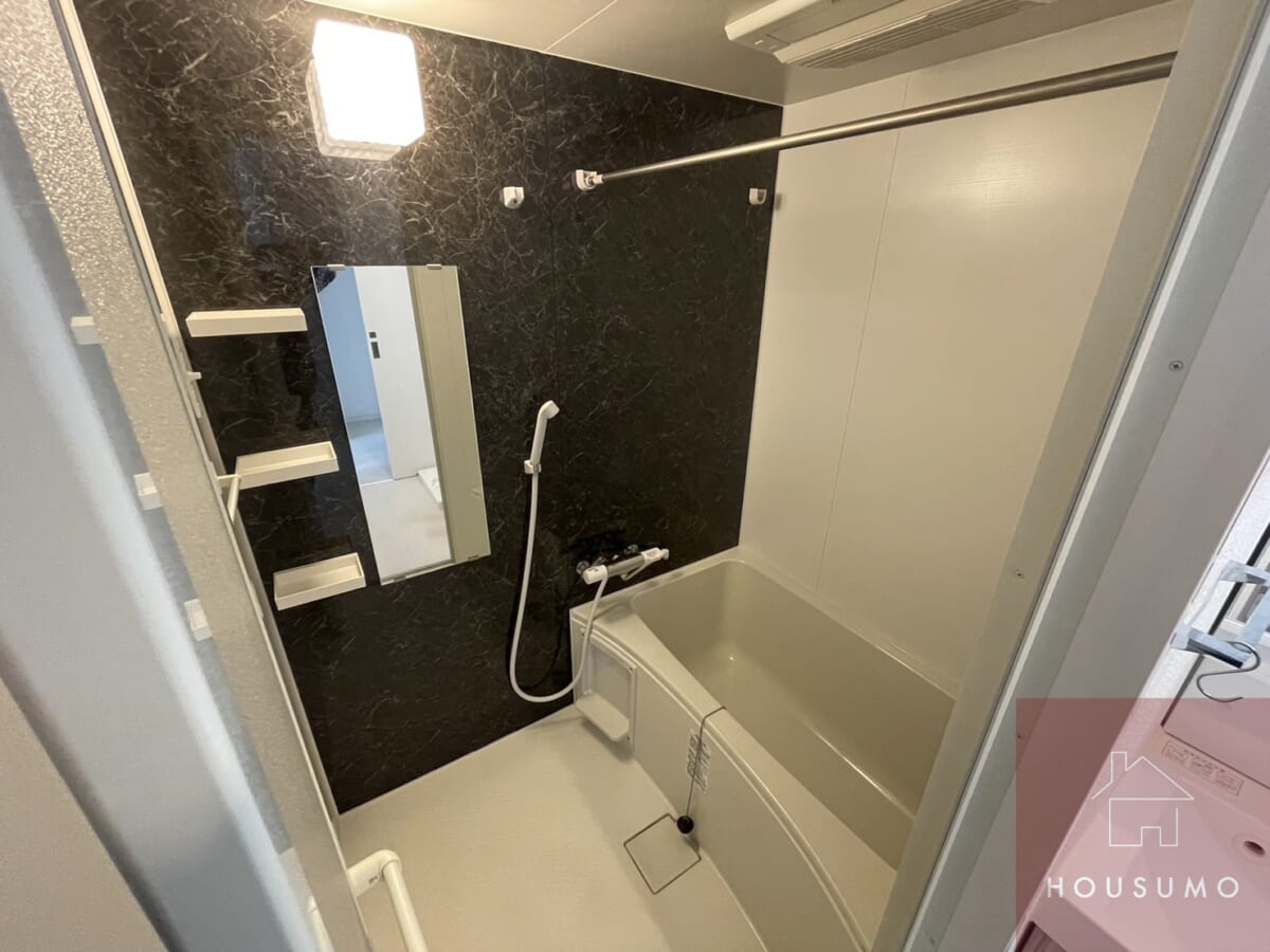 バスルームには乾燥機能を搭載しており、雨の日や夜間でも洗濯物をしっかり乾かすことが可能。湿気やカビ対策にもなるため、清潔感を維持しやすいのも魅力です。コンパクトながら清潔感のある設計で、毎日のバスタイムが心地よいリラックスタイムに。追い焚き機能などはありませんが、シンプルで使いやすく、掃除もしやすい作りになっています。