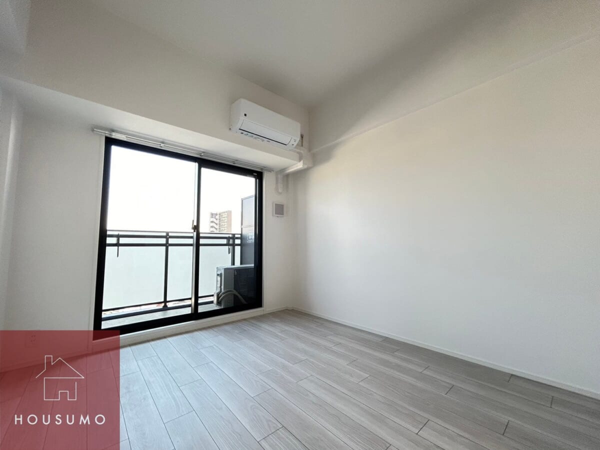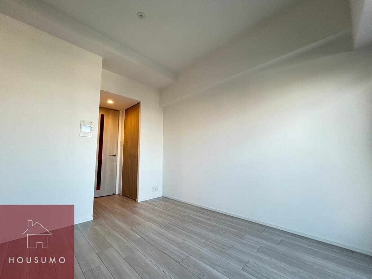 白を基調とした明るく清潔感のある洋室は、どんなインテリアにもなじむ上品な雰囲気で、6.6畳とベッドやデスクを置いても余裕があり、一人暮らしにちょうど良い広さです。北東向きのお部屋は、朝のやわらかな光が差し込み、落ち着いた空気感を演出してくれ、日中は明るすぎず、読書やリモートワークにも最適な快適空間です。壁や床、建具などのカラーが明るめに統一されており、全体がすっきり見えるデザインも魅力です。