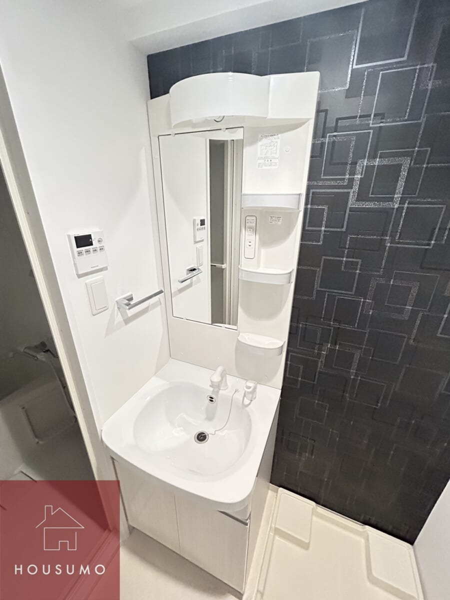 脱衣室には独立洗面台と洗濯機置き場を完備。生活動線や使い勝手にも配慮されており、朝の身支度や帰宅後の手洗い、夜のスキンケアタイムまで快適です。室内に洗濯機置き場も確保されているので、洗濯から干すまでの動線がスムーズで雨の日も快適でストレスなく日常家事がこなせます。