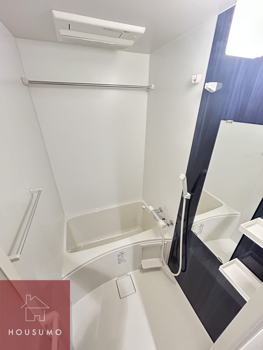 バスルームには乾燥機能を搭載しており、雨の日や夜間でも洗濯物をしっかり乾かすことが可能。湿気やカビ対策にもなるため、清潔感を維持しやすいのも魅力です。コンパクトながら清潔感のある設計で、毎日のバスタイムが心地よいリラックスタイムに。シンプルで使いやすく、掃除もしやすい作りになっています。
