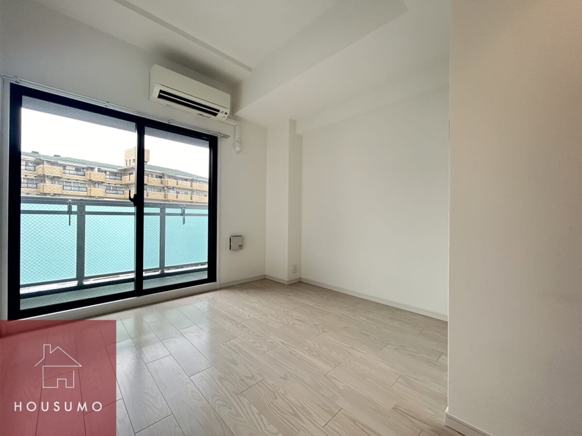 コンパクトながら居心地の良い6畳の洋室は、南向きで日差しがたっぷり入り、室内が明るく快適でで、フローリングも明るい白基調で、インテリアとの相性も抜群です。転勤で一人暮らしを始める方にも、落ち着いて過ごせる空間を提供します。ベッドやデスクの配置もしやすく、在宅ワークや勉強にも対応可能です。