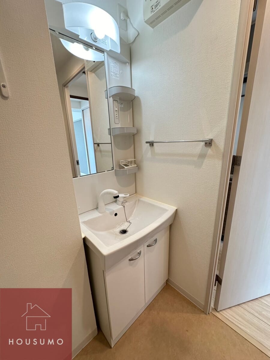 脱衣室は白を基調とした清潔感あふれる空間で、明るく爽やかな印象です。アメニティセパレート(アメセパ)仕様で、独立洗面台と洗濯機置き場、トイレが同じ空間にあり、使い勝手も良好です。忙しい朝でも時短にもなりスムーズに身支度ができ、掃除もしやすい設計になっています。清潔感を重視したシンプルなデザインで、快適な毎日の身支度をサポートしてくれます◎