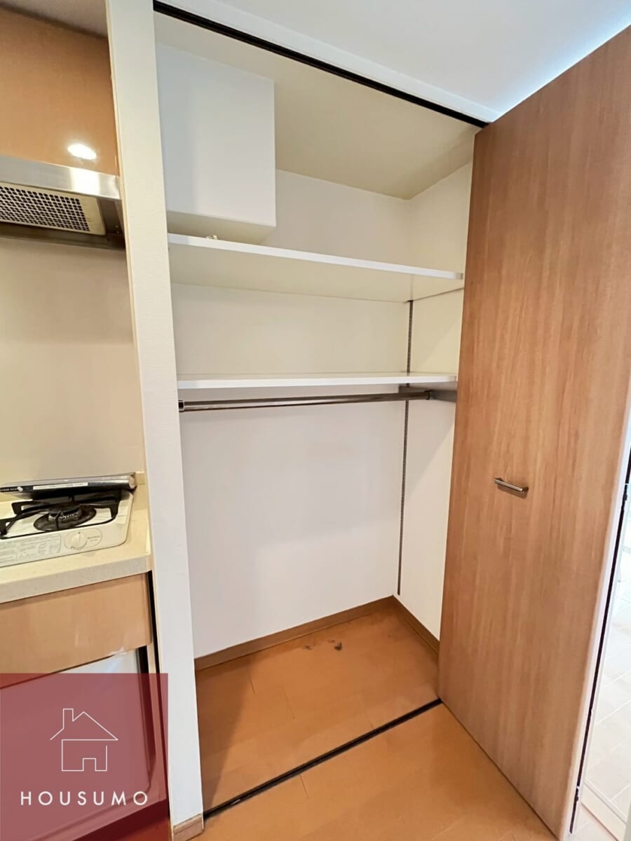 収納スペースはキッチン横にクローゼットを設けており、衣類から季節物の小物までしっかり整理できます。さらにロフトを併用することで、大容量の収納力を実現。荷物が多い方でもお部屋を広く使えるため、室内の見た目もスッキリ見せることができます。収納力の高さは一人暮らしの快適度を大きく左右するため、この物件の大きな強みのひとつです◎