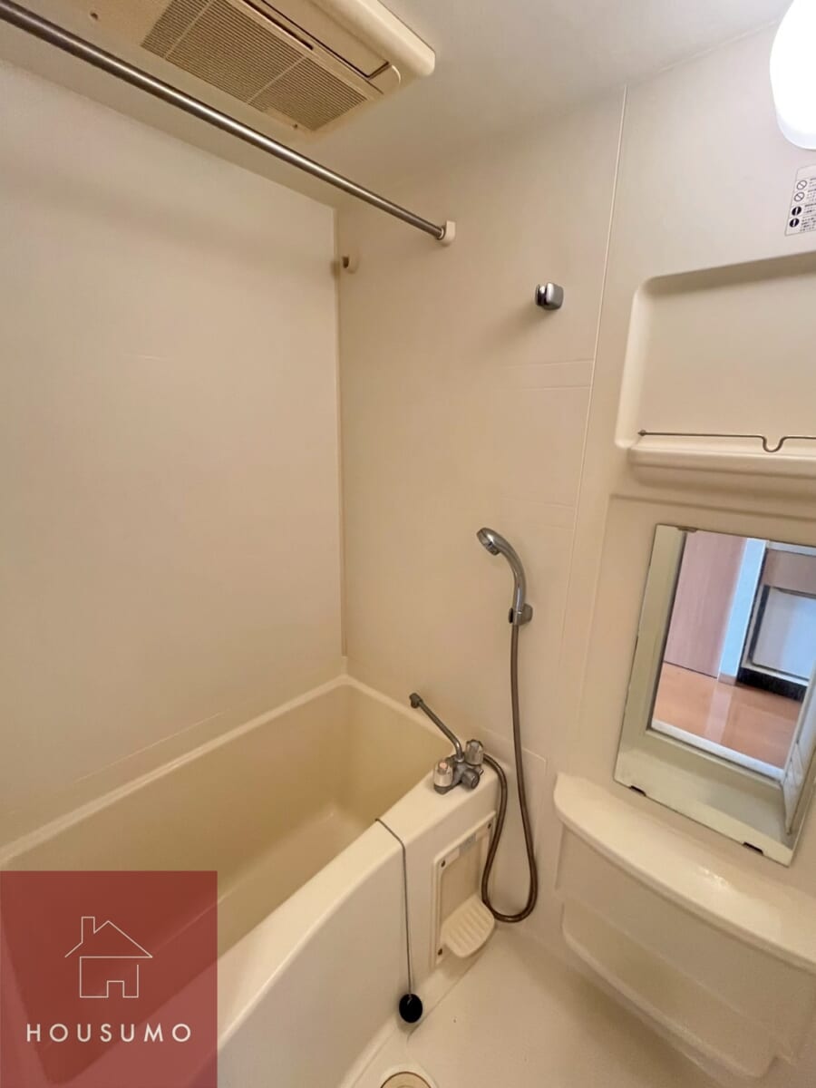バスルームはシンプルで無駄のない造りになっており、毎日の入浴を快適にサポートしてくれます。掃除もしやすく、清潔感を保ちやすい点が魅力。浴槽は一人暮らしにちょうど良いサイズ感で、肩までしっかり浸かれるため、日々の疲れを癒すリラックスタイムを確保できます。シンプルだからこそ、バスグッズや小物で自分好みの空間にアレンジしやすいのもポイントです◎