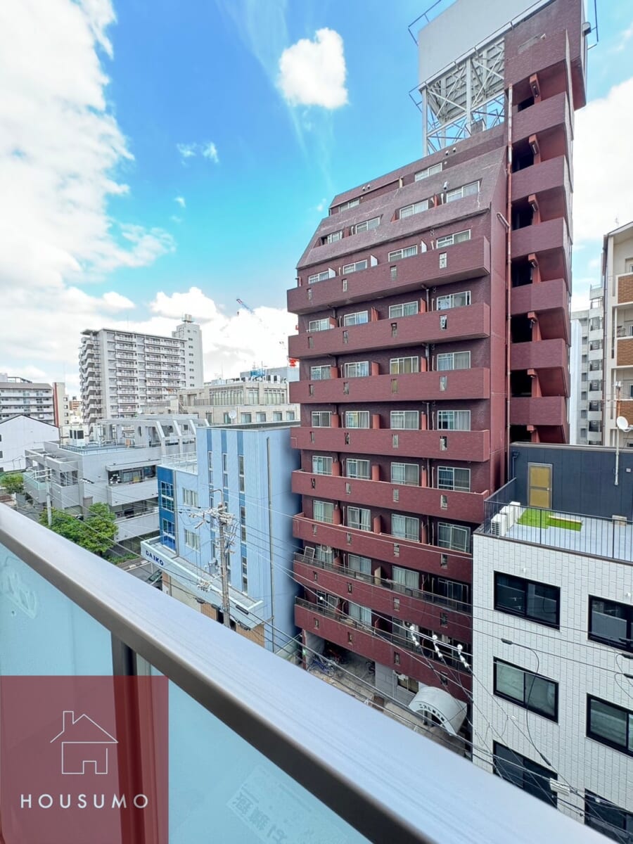 バルコニーの前方には同じくらいの高さのマンションがありますが、建物とは一つ道を挟んで向かい合う形になっているため、近すぎて視線が気になるような圧迫感はありません。適度な距離が確保されていることで、日中の明るさや風通しもしっかり感じられ、都市部らしい安心感のある景観が広がります。朝には東向きならではの爽やかな光が入り、視界にひらけた空もしっかり見えるため、天気の変化や時間の移ろいを自然と感じられる暮らしができます◎