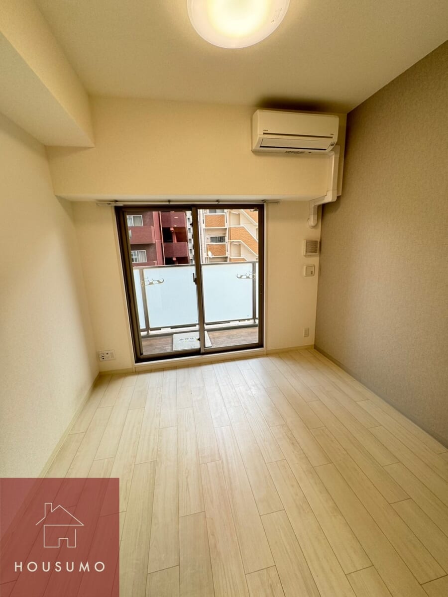6畳の洋室は、単身者の方が“ちょうど良い”と感じるサイズ感で、家具配置がしやすい長方形レイアウト。東向きの窓からは朝日がしっかり差し込み、自然光で部屋全体がふんわり明るくなるため、朝の支度も気持ち良くスタートできます。梁の出が少なくレイアウトの自由度が高い点も魅力で、ベッドとデスクを置いても圧迫感が出にくいのが特徴です。インターネットも無料のため在宅での仕事にもぴったりです◎