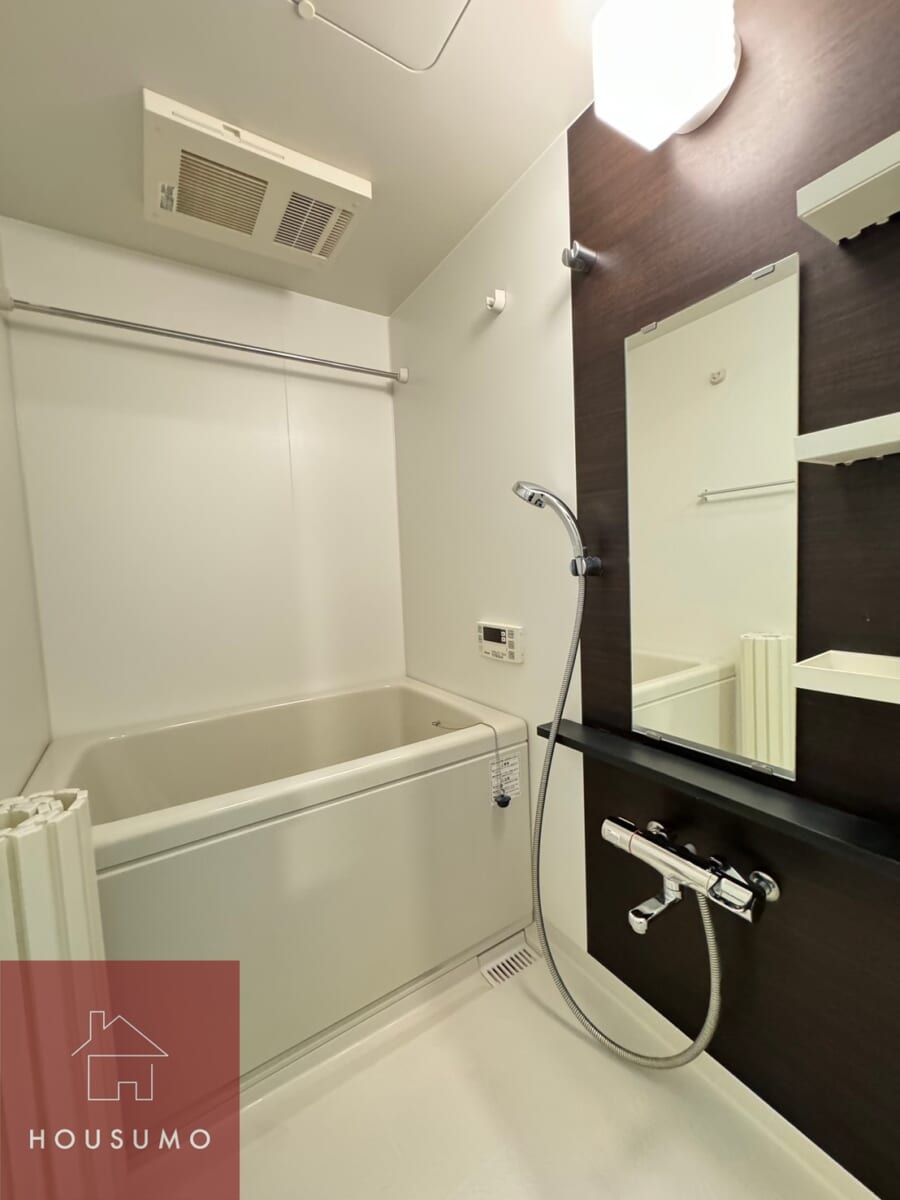 バスルームはセパレードタイプなので、日常的に湯船につかる方にはぴったりです。また、浴室乾燥機能を搭載しており、雨の日や夜間でも洗濯物をしっかり乾かすことが可能で、湿気やカビ対策にもなるため、清潔感を維持しやすいのも魅力です。コンパクトながら清潔感のある設計で、毎日のバスタイムが心地よいリラックスタイムに。追い焚き機能などはありませんが、シンプルで使いやすく、掃除もしやすい作りになっています◎