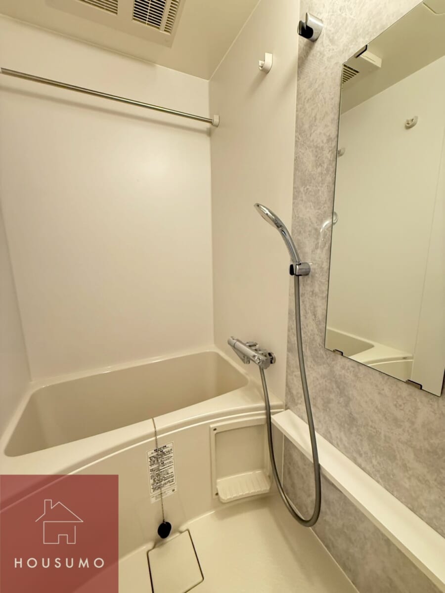 バスルームはセパレードタイプなので、日常的に湯船につかる方にはぴったりです。また、浴室乾燥機能を搭載しており、雨の日や夜間でも洗濯物をしっかり乾かすことが可能で、湿気やカビ対策にもなるため、清潔感を維持しやすいのも魅力です。コンパクトながら清潔感のある設計で、毎日のバスタイムが心地よいリラックスタイムに。追い焚き機能などはありませんが、シンプルで使いやすく、掃除もしやすい作りになっています◎
