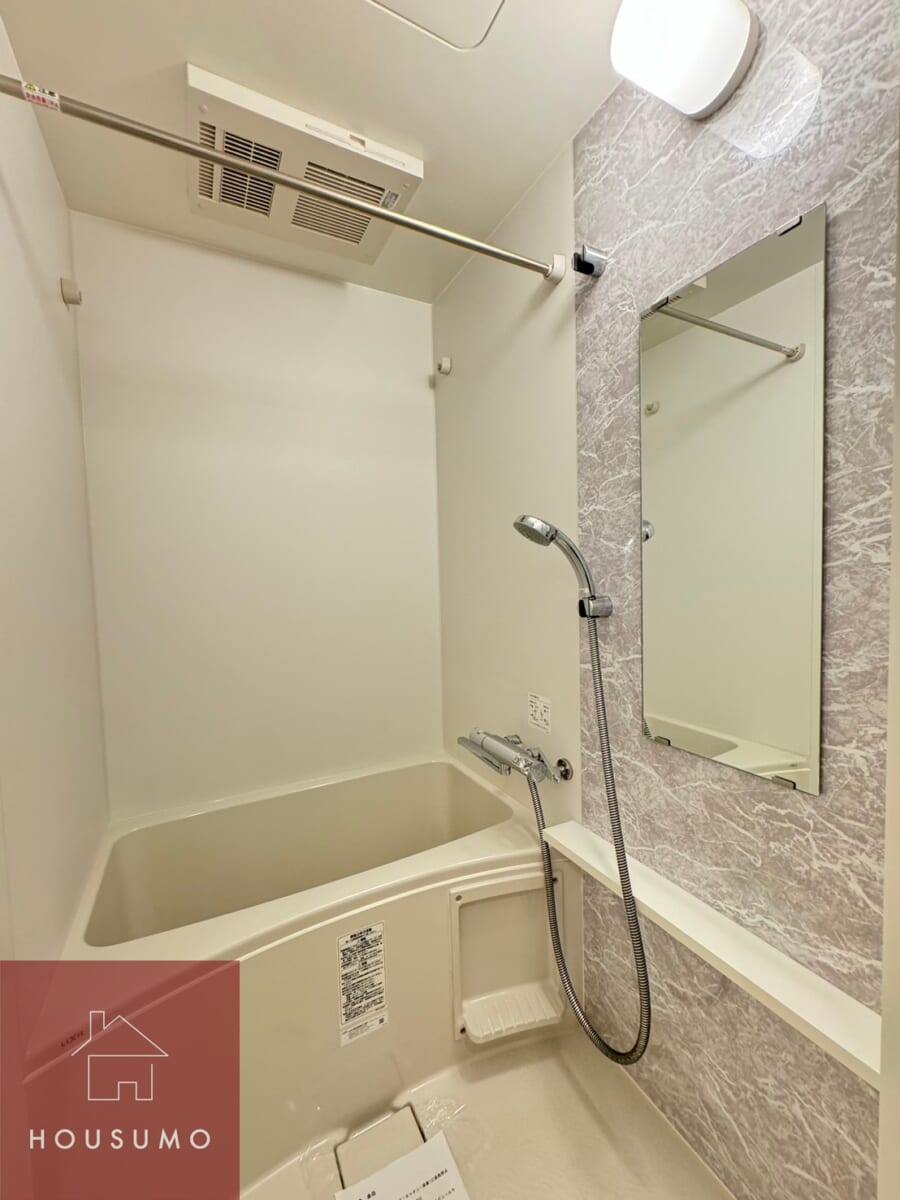 バスルームは浴室乾燥機能つきなので、天気に左右されずに洗濯物が乾かすことができ、女性の一人暮らしや忙しいビジネスパーソン、梅雨の時期や花粉の季節にも大活躍します。また、乾燥機能だけでなく、カビ予防や暖房機能としても使えるため、一年中快適なバスタイムになります◎