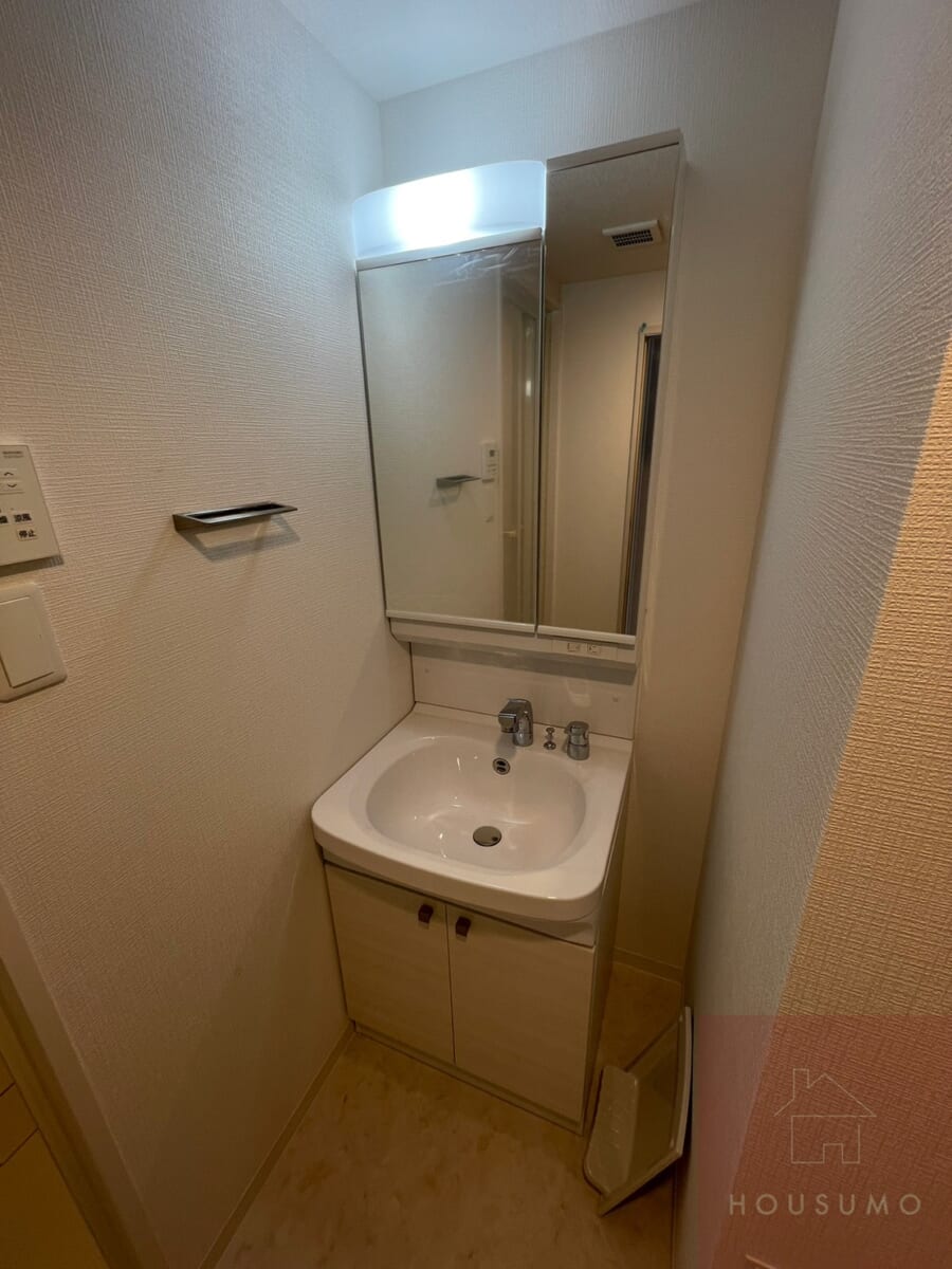 脱衣室には、独立洗面台と洗濯機置き場が設置され、朝の支度も洗濯も“その場で完結”できる使い勝手の良い空間です。動線が短く、洗濯物の予洗いから洗濯機へ移す流れが非常にスムーズ。忙しい日でもムダな動きがなく、家事効率をしっかり支えてくれます。独立洗面台は、身支度に必要なアイテムをまとめて置けるため、生活リズムを整えたい方にもおすすめです。シンプルながらも必要な機能が揃った脱衣室は、一人暮らしはもちろん、同棲生活でも“自然と暮らしやすい”と感じられる実用的なスペースです◎