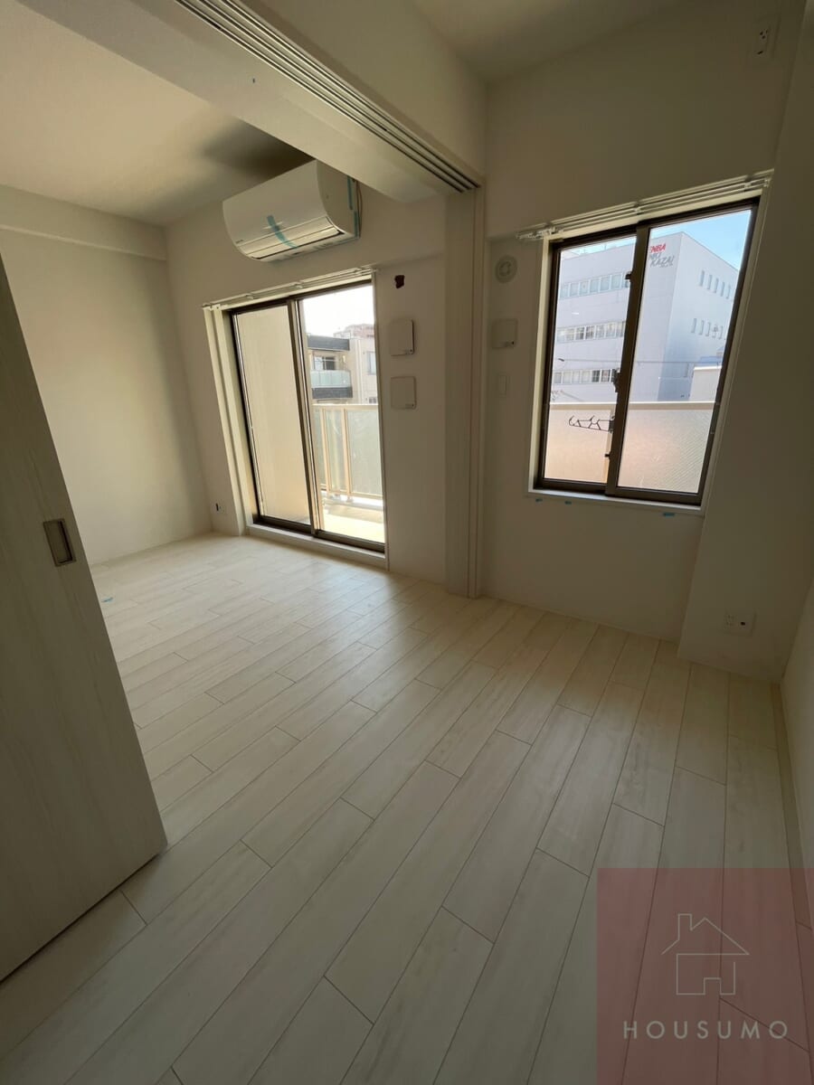 LDKは、白基調で清潔感だけでなく“照明・自然光の反射で広く見える”というメリットがあります。さらに南向きの窓から光がしっかり入り、築浅物件ならではのキレイさも相まって、日中は照明なしでも快適に過ごせる明るさです。キッチンとの距離感もちょうど良く、ソファとダイニングをどちらも無理なく置くことができ、テレビの配置やテーブルのレイアウトも自由度が高く、在宅ワークにも対応しやすい“整う”間取りです。LDK横の洋室は3畳とコンパクトな印象ですが、ベッドスペース・書斎スペース・大型収納のサブスペースなど、“用途に合わせて最適化できる”控えめで無駄のない空間で、引き戸だから家具の配置が制限されにくいのも嬉しいポイントです◎