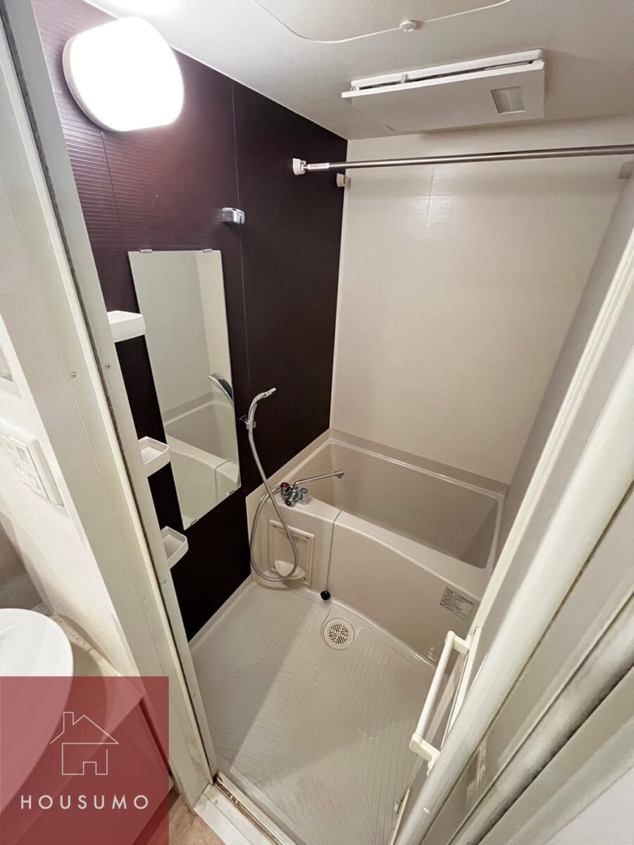 バスルームはセパレードタイプなので、日常的に湯船につかる方にはぴったりです。また、浴室乾燥機能を搭載しており、雨の日や夜間でも洗濯物をしっかり乾かすことが可能で、湿気やカビ対策にもなるため、清潔感を維持しやすいのも魅力です。コンパクトながら清潔感のある設計で、毎日のバスタイムが心地よいリラックスタイムに。追い焚き機能などはありませんが、シンプルで使いやすく、掃除もしやすい作りになっています。