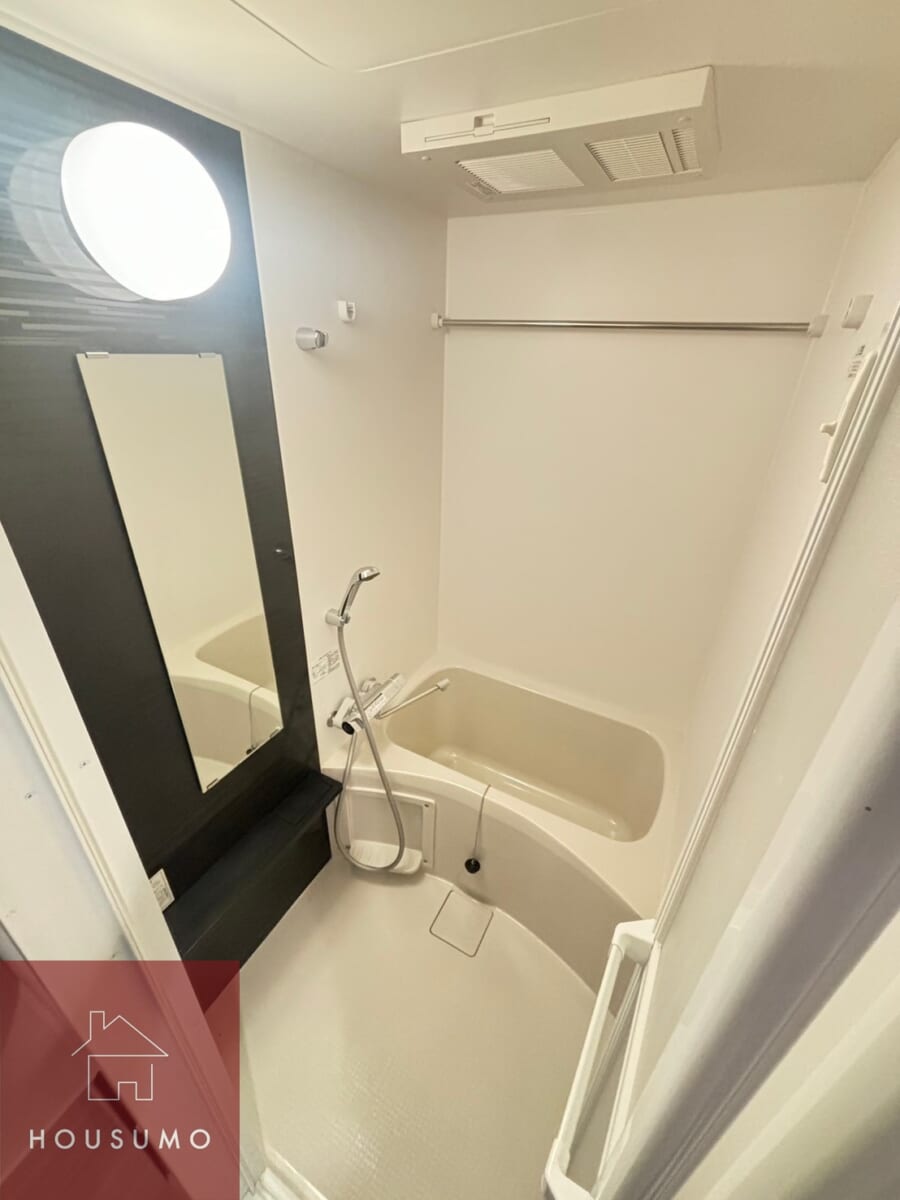 バスルームはシンプルで無駄のない造りになっており、毎日の入浴を快適にサポートしてくれます。掃除もしやすく、清潔感を保ちやすい点が魅力。浴槽は一人暮らしにちょうど良いサイズ感で、肩までしっかり浸かれるため、日々の疲れを癒すリラックスタイムを確保できます。シンプルだからこそ、バスグッズや小物で自分好みの空間にアレンジしやすいのもポイントです。