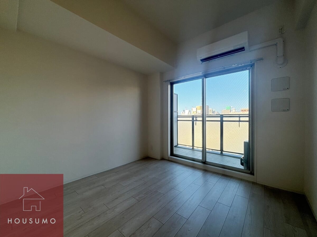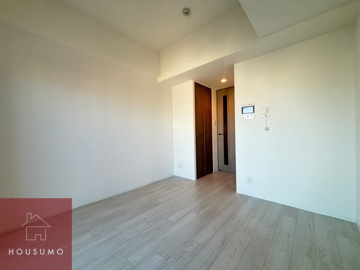 白を基調とした室内は、築浅マンションならではの清潔感と洗練された印象が際立つ空間で、6畳とコンパクトながら、縦のラインを意識した設計で実際よりも広く感じられます。南向きのため日中は自然光がしっかり入り、明るく開放的。家具の色やインテリアを選ばず、シンプルにもモダンにもコーディネートできる点が、一人暮らしの幅を広げてくれます。
