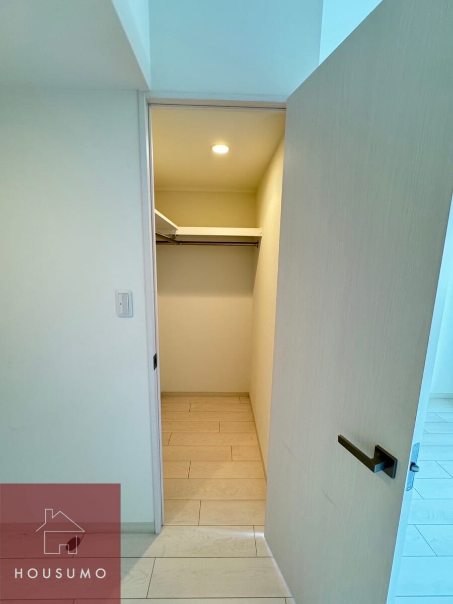 洋室にはウォークインクローゼットを完備しているので、衣類はもちろん、スーツケースや季節物の家電までしっかり収納できる容量があります。居住スペースに収納家具を増やさずに済むため、洋室を広くすっきり使えるのが大きな魅力。荷物が多めの方や収納能力重視の方、整理整頓を重視したい方にもおすすめです。