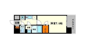 洋室は7.6畳と、1Kの中ではゆとりを感じられる広さ。ベッドとデスクを配置しても圧迫感が出にくく、在宅ワークや趣味の時間も快適に過ごせます。シンプルな間取りだからこそ、家具の配置がしやすく、自分らしいレイアウトを楽しめるのもポイント。新大阪エリアという利便性の高い立地にありながら、室内は落ち着いた一人時間を大切にできる空間です◎