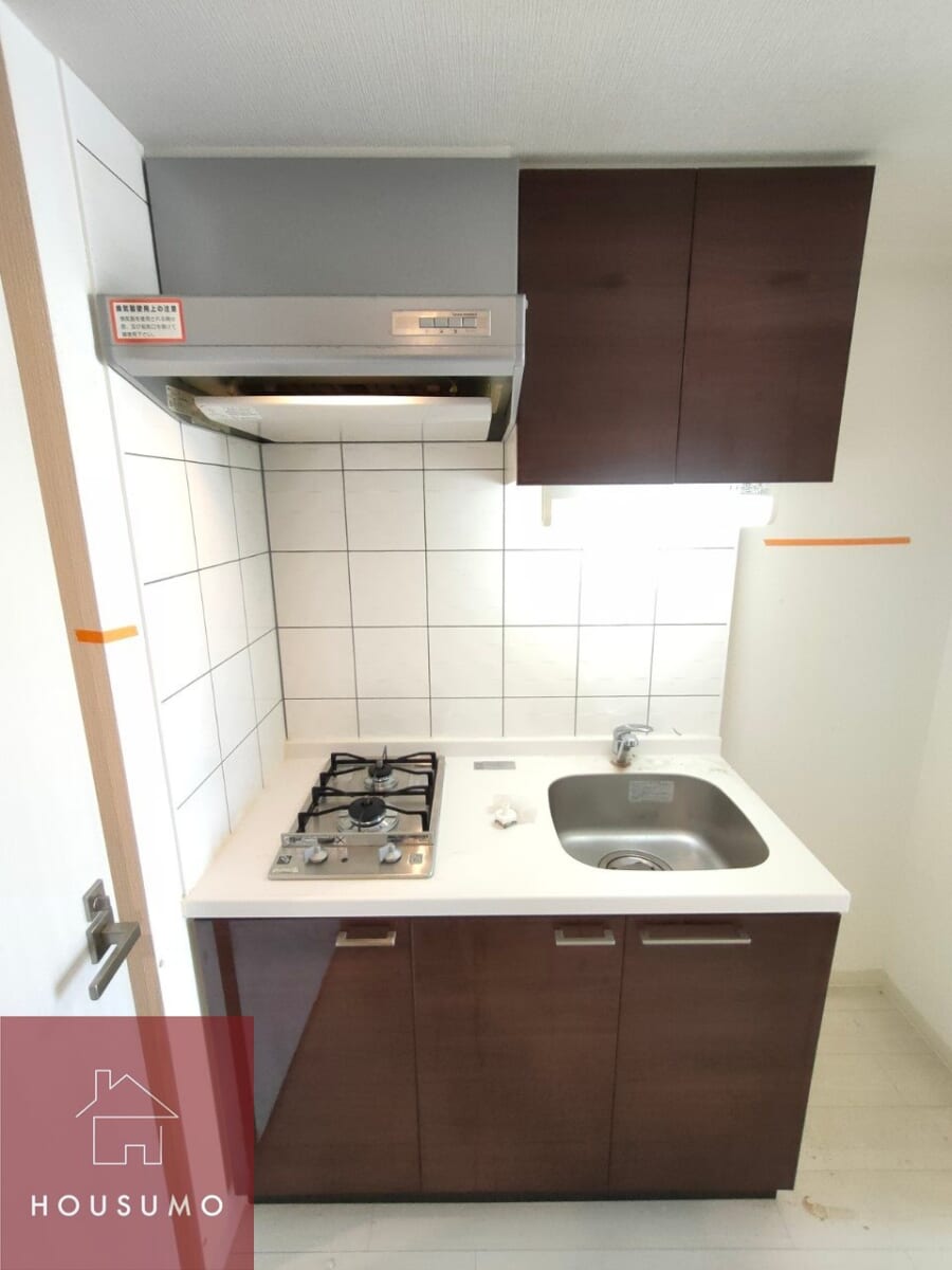 キッチンはコンパクトながら使い勝手を重視した設計で、縦型2口ガスコンロを完備。調理スペースも確保されており、同時調理が可能なので、自炊派の方にも嬉しい環境です。上下に収納スペースがあり、食器や調理器具を整理しやすく、作業効率が上がります。忙しい転勤者の方でも、シンプルな動線でスムーズに料理ができる工夫が施されています。