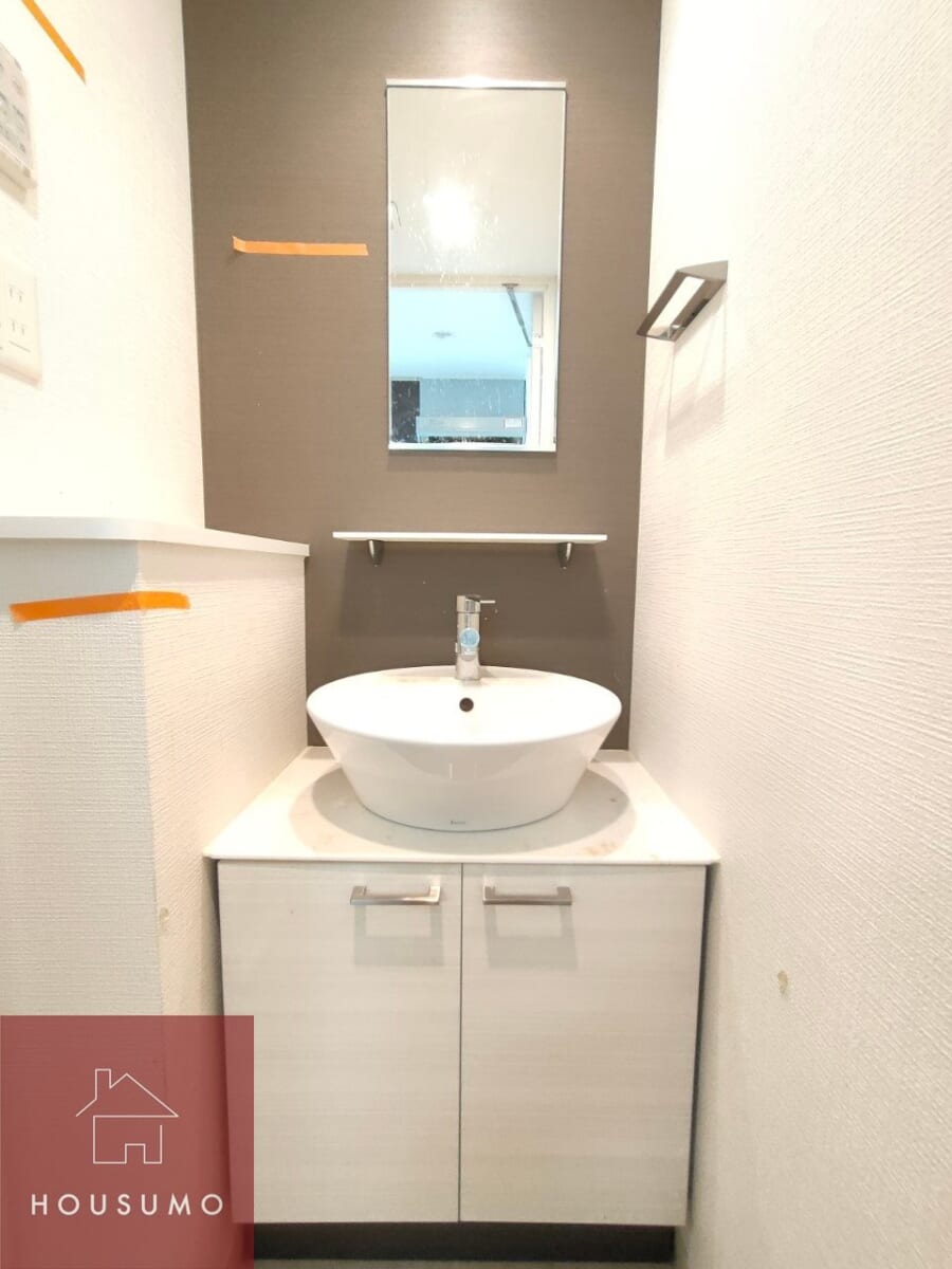 脱衣室には独立洗面台が設けられており、朝の支度や帰宅後の身だしなみを整える時間が快適に。収納がしっかり確保されているため、スキンケア用品やヘアセット道具、日常的に使う小物類をすっきりと隠して置けます。洗面台周りに物が出っぱなしにならないので、毎日使う場所なのに自然と清潔感がキープできる点が魅力です。生活感を抑えつつ“自分のための身支度スペース”をつくりたい方にぴったりの仕様です◎