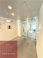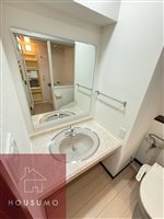 脱衣所はゆとりのあるスペースが確保され、身支度がしやすい設計です。大きめの鏡が設置されており、朝の準備やスキンケアもしっかり行えます。独立洗面台付きで、白を基調とした空間で、明るく清潔感のある印象です。大きめの鏡が設置されており、朝の身支度や外出前のチェックもしやすい仕様。使い勝手と見やすさを兼ね備えた、快適な脱衣スペースとなっています。
