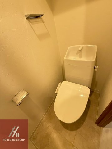 トイレは白を基調とした清潔感のある内装で温水洗浄便座が標準装備されており季節を問わず快適に使用できる空間となっています。手洗い場が一体となったタンクを採用しているため省スペースでありながら機能性が高く日々の使い勝手にも配慮された設計です。壁面にはスタイリッシュなペーパーホルダーが設置されておりシンプルなデザインがお部屋全体のモダンな雰囲気を引き立てています。毎日使う場所だからこそ清掃のしやすさと心地よさが追求されており限られたスペースの中でもリラックスして過ごせる工夫が施されています。